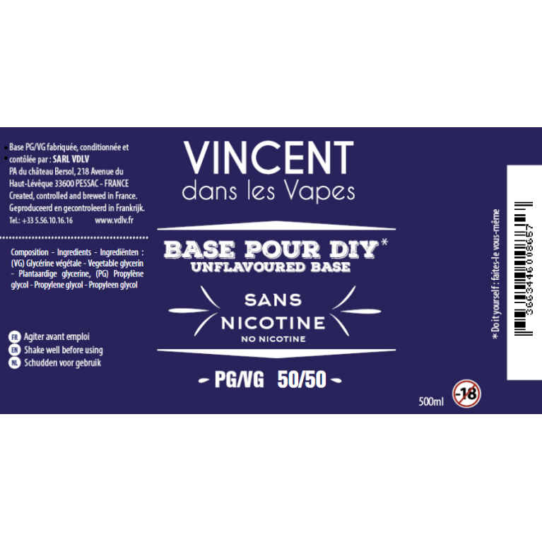 - Qualité pharmaceutique: Les bases VDLV sont composées de propylène glycol (PG) et de glycérine végétale (VG) de qualité pharmaceutique, garantissant une pureté et une sécurité optimales.